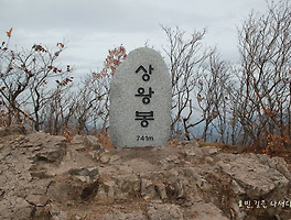 100대 명산에 조금도 손색없는 도심속의 명산이다.산 모양의 정상석이 삐딱하게 세워졌다.