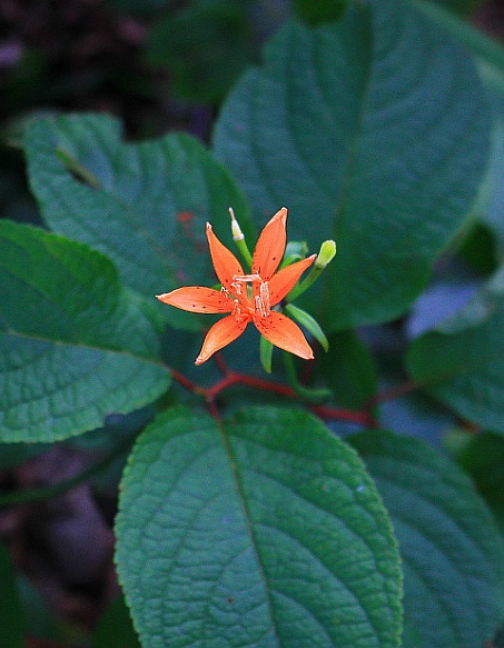 마주난 잎이 3개로 비슷한 크기로 갈라져 6갈래로 돌려나기 하는것 같은 골등골나무.