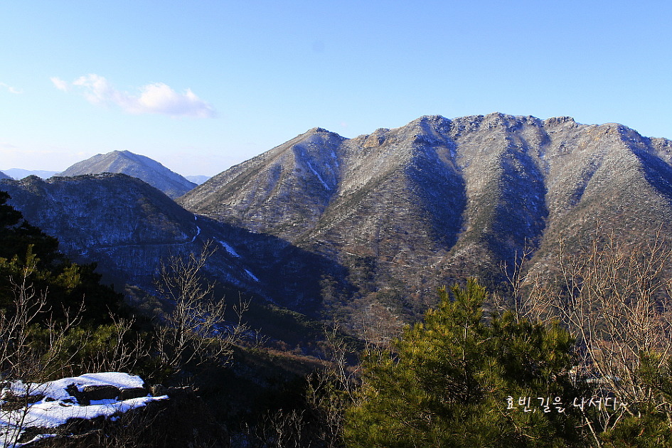 좌측 뒤로 뾰족 보이는 산은 불태산.