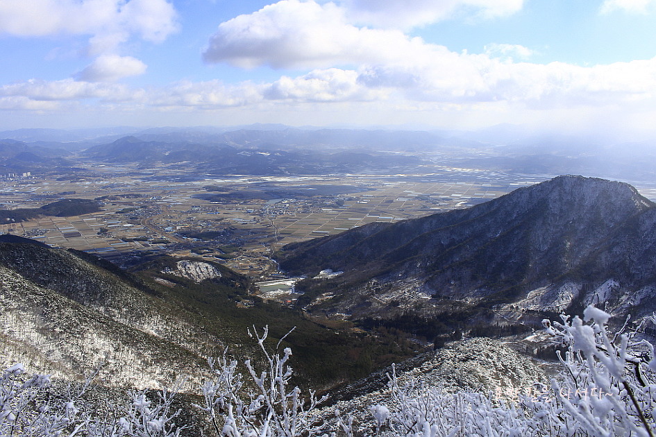 가운데 왕벽산과 그 뒷라인 좌측으론 추월산이 흰눈을 가득 이고 있다.