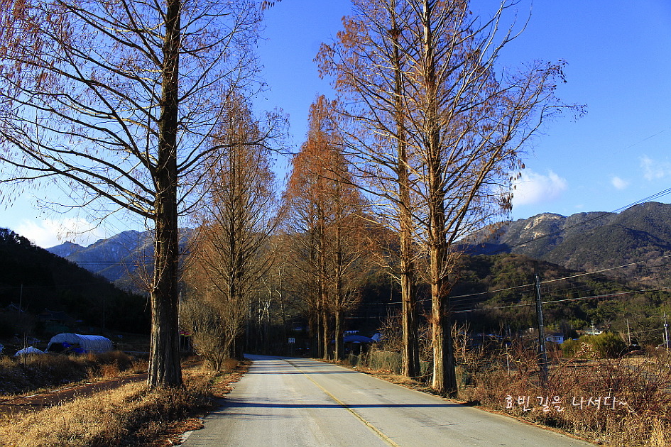 병풍산에 가는 버스는 10시 50분이니 잠시 근처의 메타세콰이어길을 걸어본다.