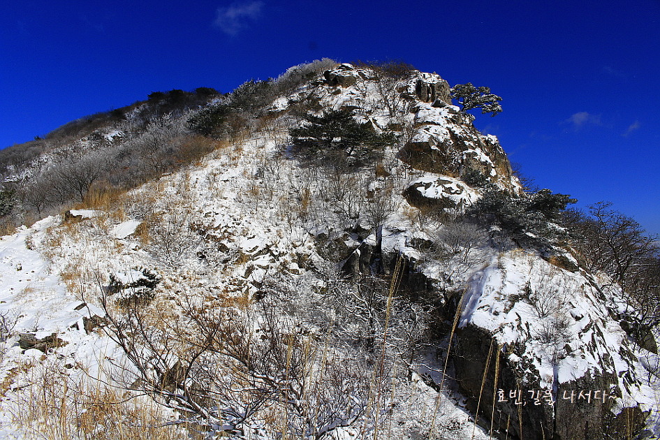 병풍산이란 이름에 걸맞게 주능선 남쪽면 곳곳엔 아기자기 암벽이 겨울산을 수놓고~