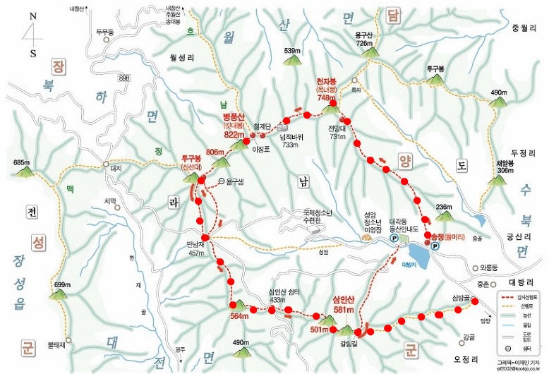 방장산 입암산 백암산 내장산 추월산 산성산으로~~