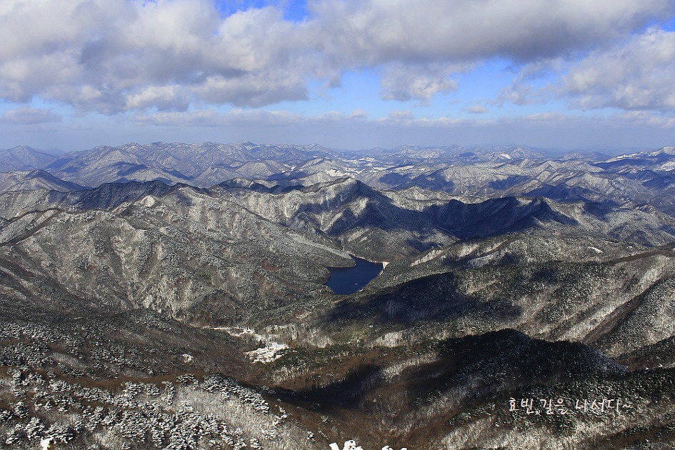 오른쪽 아래로는 산행 초입 대방저수지도 들어오고
