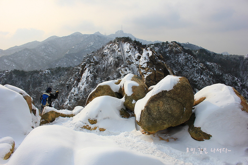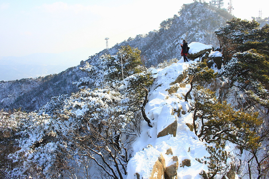 눈까지 내리고나니 바위 오르내리는게 그리 쉬운것만은 아닌가 보다.