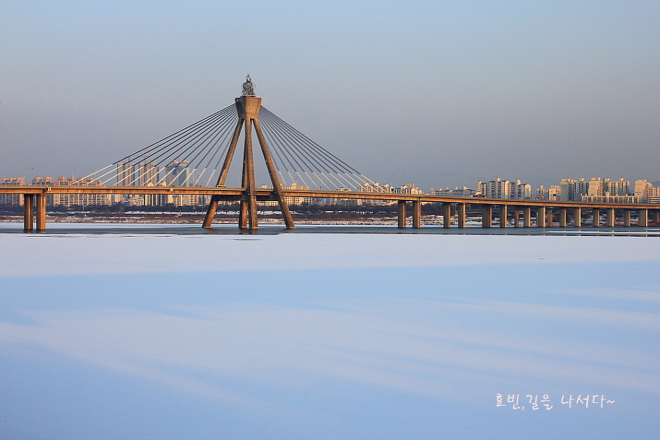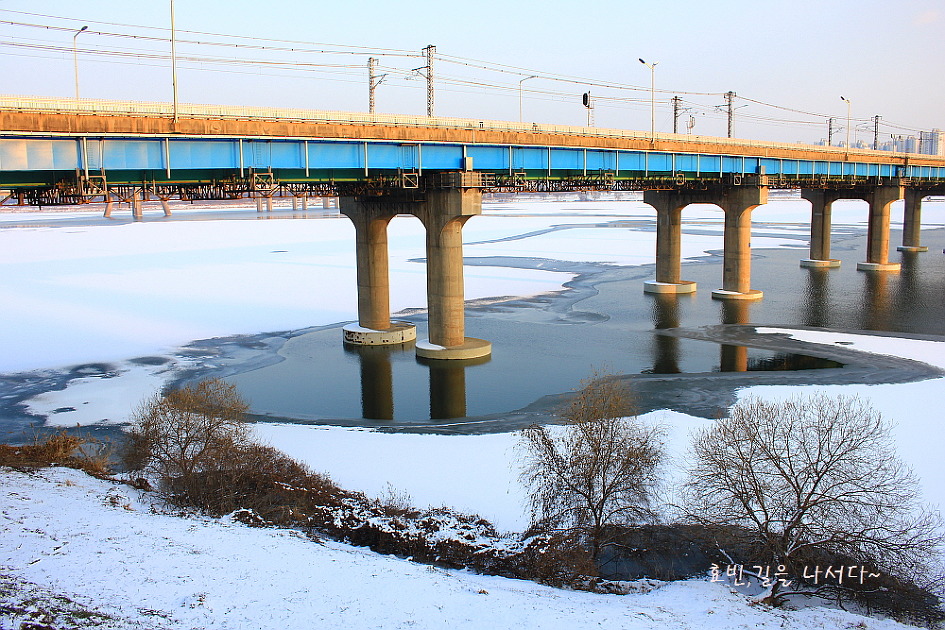 지하철을 타고 한강을 건너면서 보니 오랜만에 한강이 얼어간다.