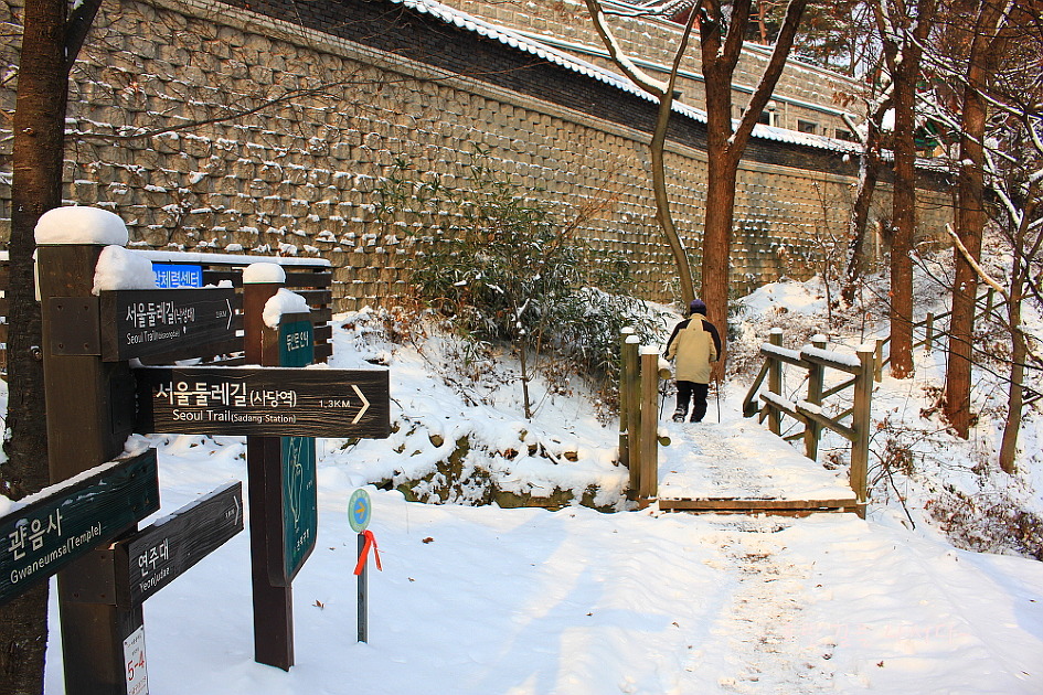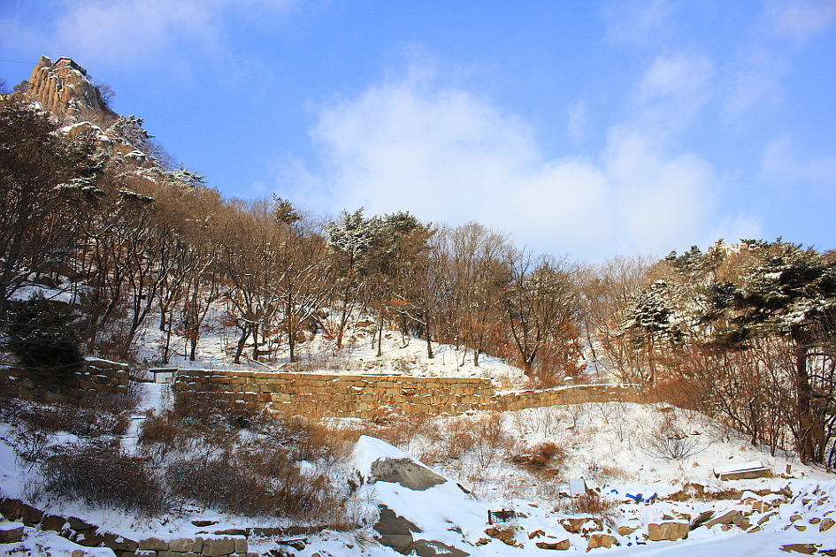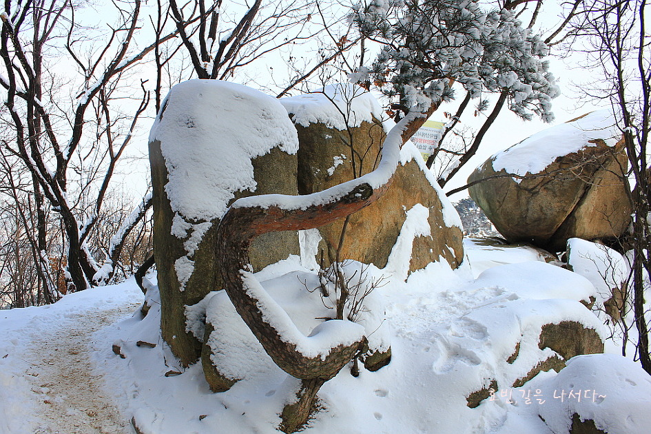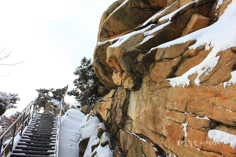 보통때야 바로 바위를 타고 오르는게 스릴 넘치지만 오늘처럼 눈이 쌓인 날도 가능할지 일단 가보기로 한다.