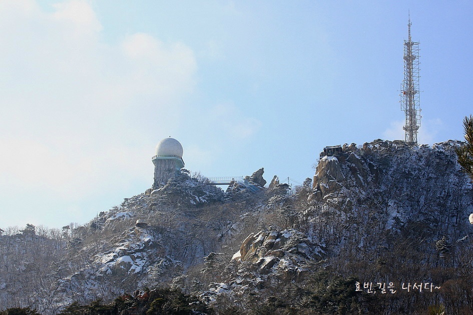 뒤돌아본 기상레이더관측소와 연주대 모습.
