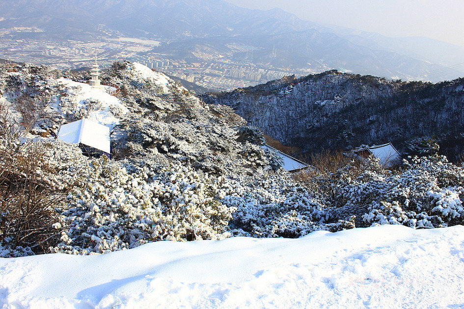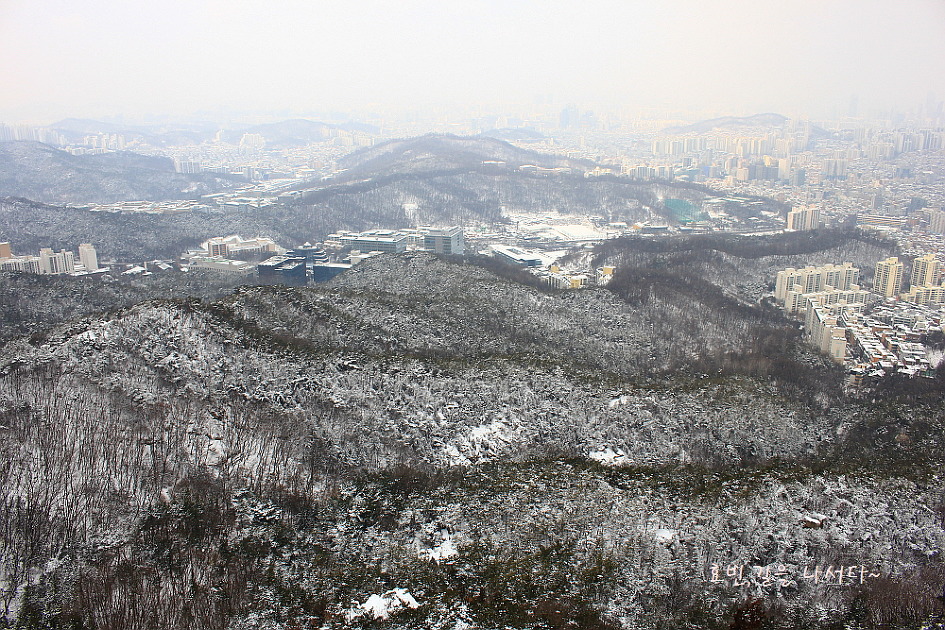 아래로는 공사중인 관악사지가 흰눈에 덮혀 있고