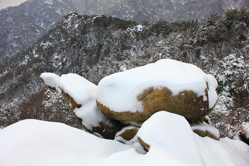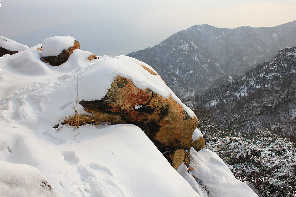 에휴~~바위도 쥐뿔도 못타는게 눈까지 덮힌 바위를 오르겠다고~