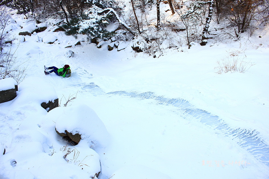 다음에 눈내렸을땐 이 길로 오르지 않을기야요~~