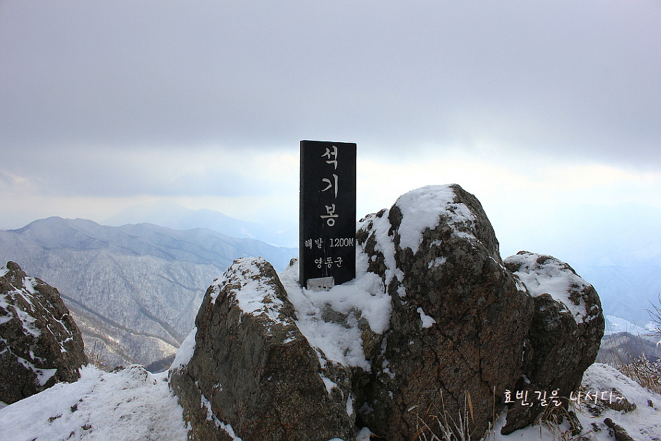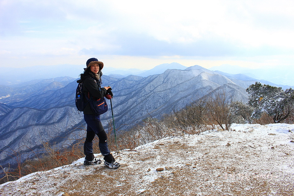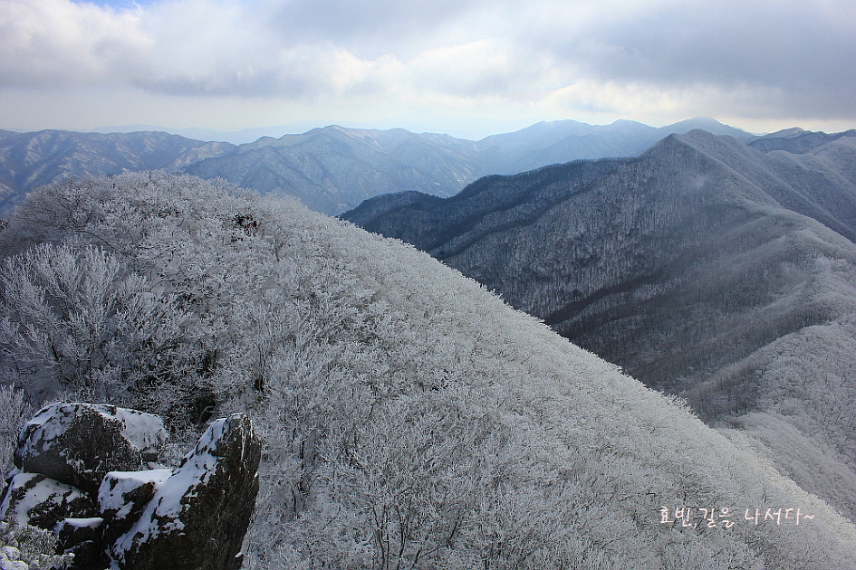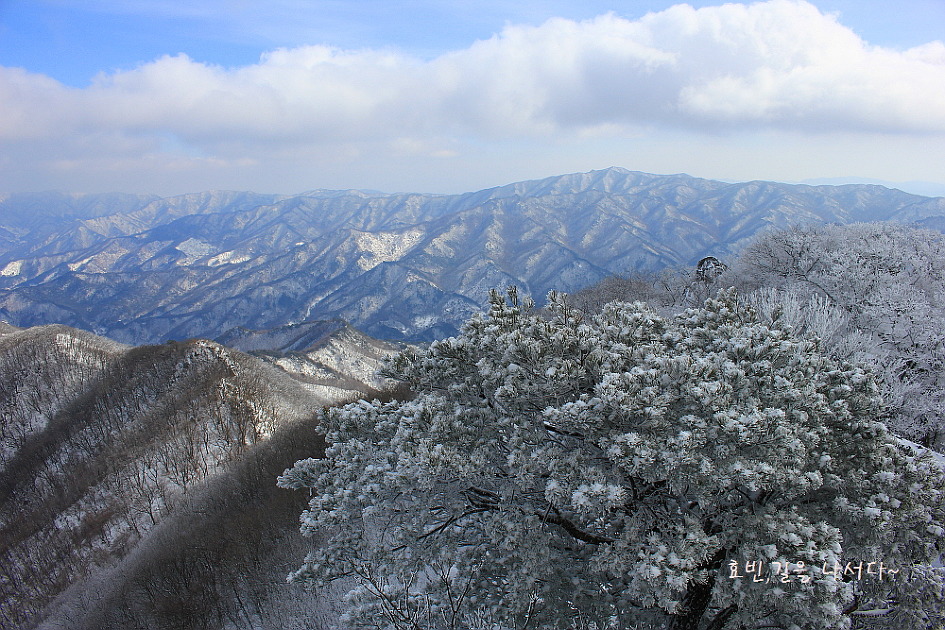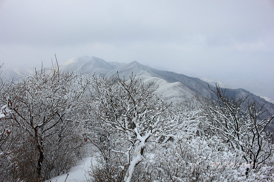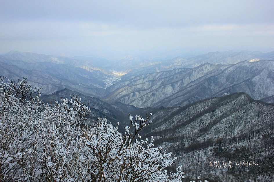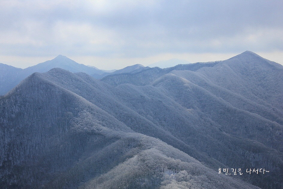 제일 왼쪽 뒤로 흰눈이 더 쌓인 황악산으로 이어진다.
