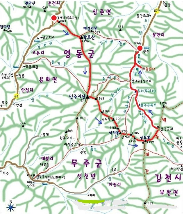 산행코스 : 도마령 ~ 각호산 ~ 민주지산~ 석기봉~ 삼도봉~물한계곡