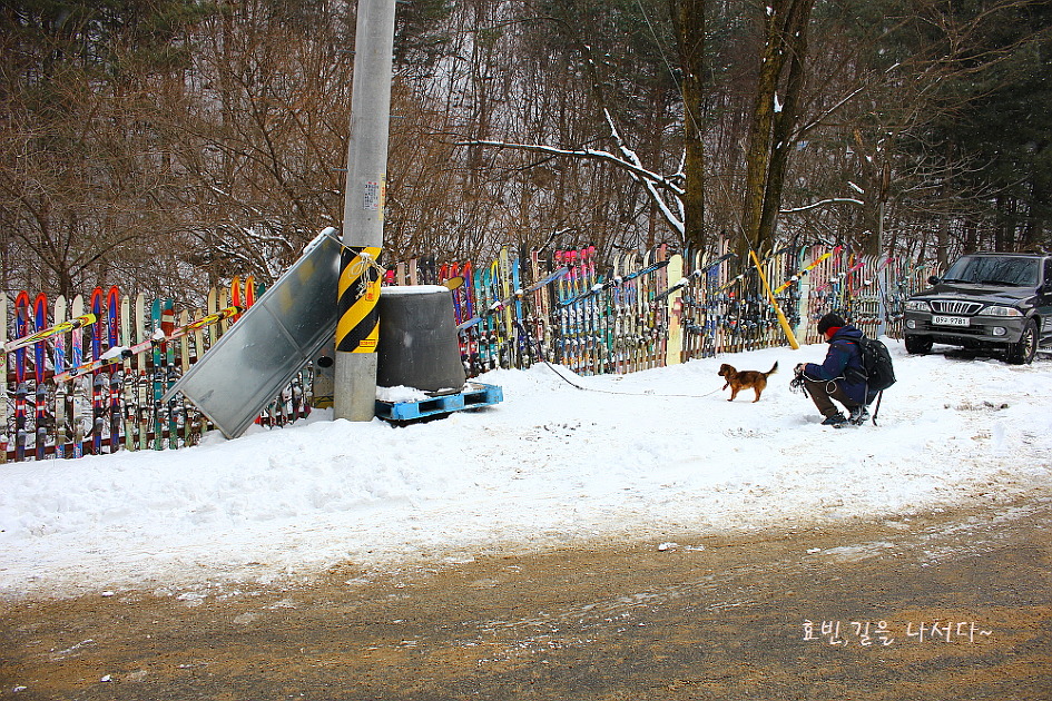 입구엔 스키 장비들도 여전히 늘어서 있고 변함없는 물한계곡이었다.