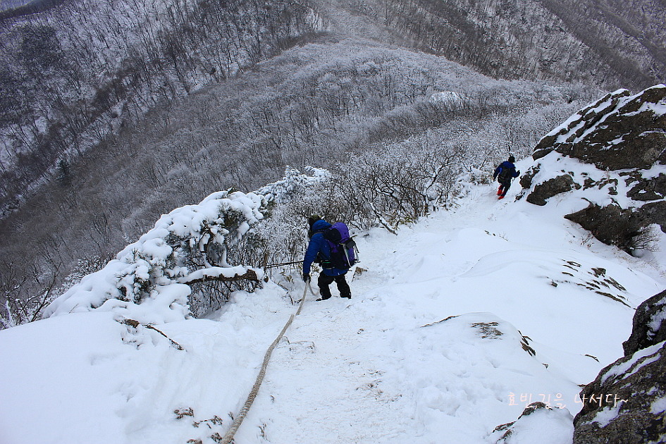 짧은 암봉이지만 눈이 내린뒤는 조금 험하게 느껴질수도 있어
