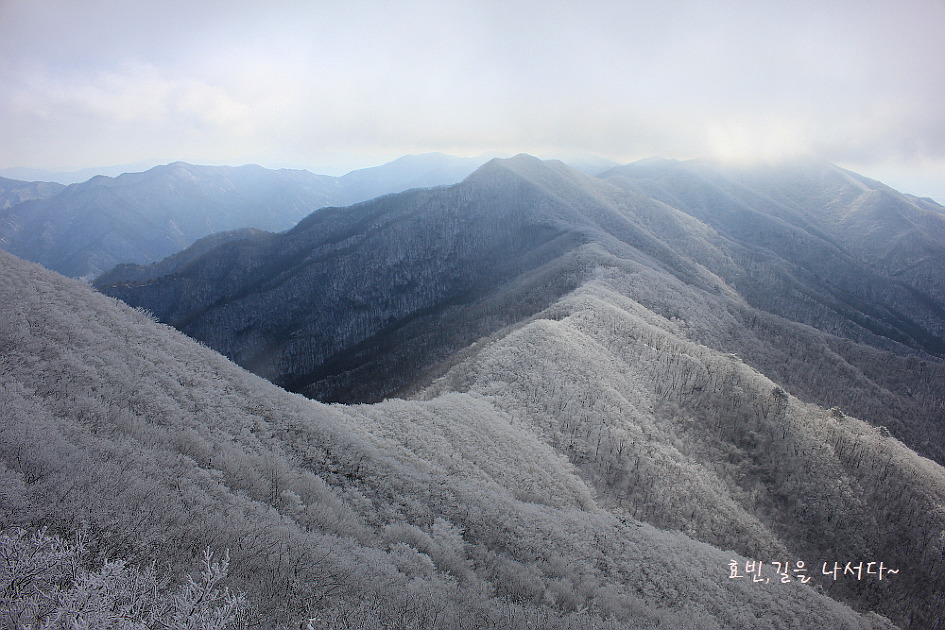 어느 산에서고 이런 능선을 마주하면 이곳에서 보았던 각호산~민주지산을 떠올리게 된다.
