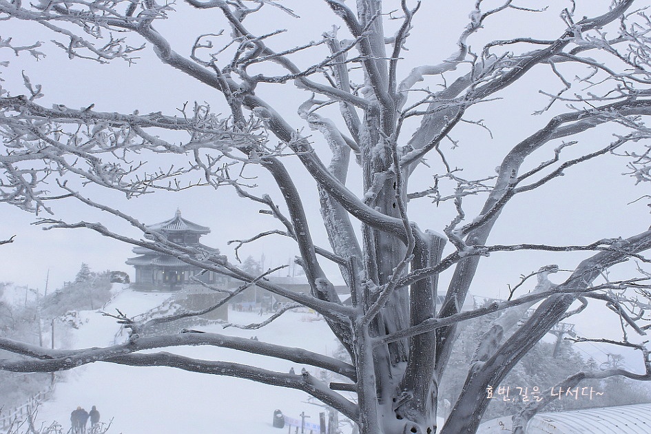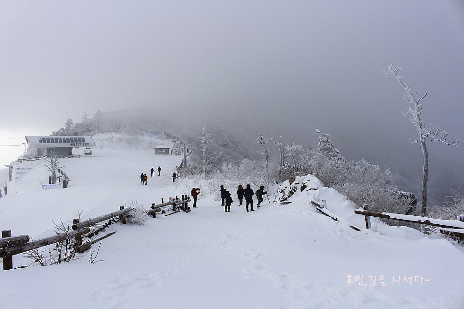 불어대는 눈보라와 향적봉대피소는 밥짓는 시골의 연기처럼~