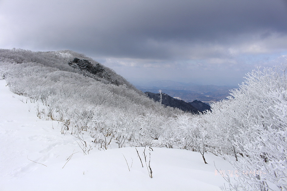 대덕산과 삼봉산 방향으로 핀 몽글몽글 사랑스럽기만 한 눈송이들.