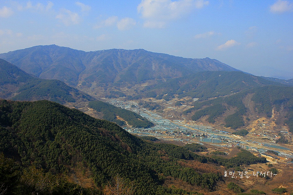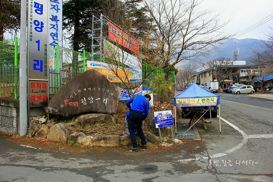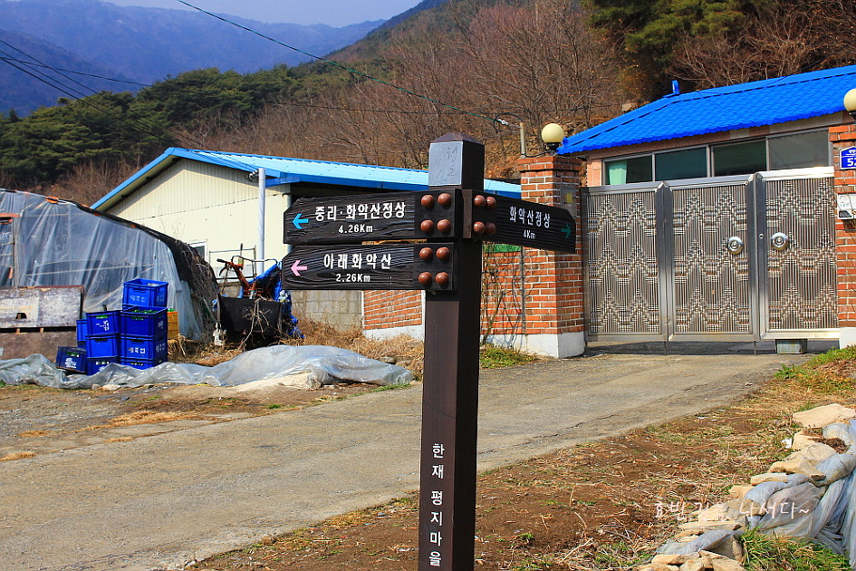 밤티재에서 정상까진 1.6km. 이곳 평양1리에선 4km.