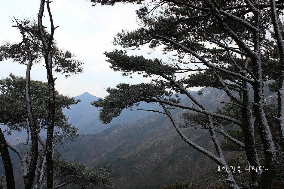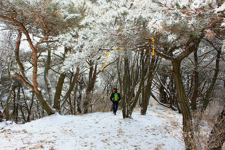 간밤에 비가 내렸다 했는데 정상부로 오를수록 제법이나 눈이 내려 있었다.