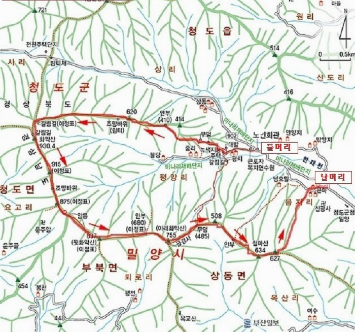 화악산(931.5M)은 경북 청도군 청도읍과 경남 밀양시 부북면과 청도면에 걸쳐 있는 산으로