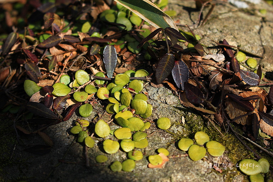 습기 많은 바위나 노목에 붙어 자라는 난대성 양치식물 콩짜개덩굴인데