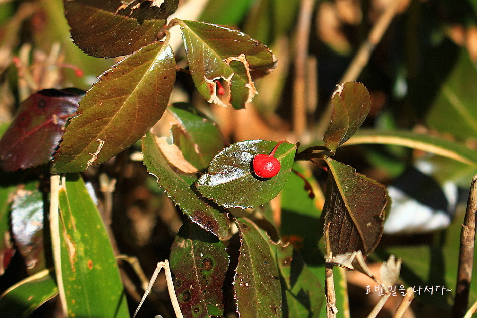 남쪽 바닷가 산지에 온 실감이 난다.등로에 가득한 자금우 때문이다.