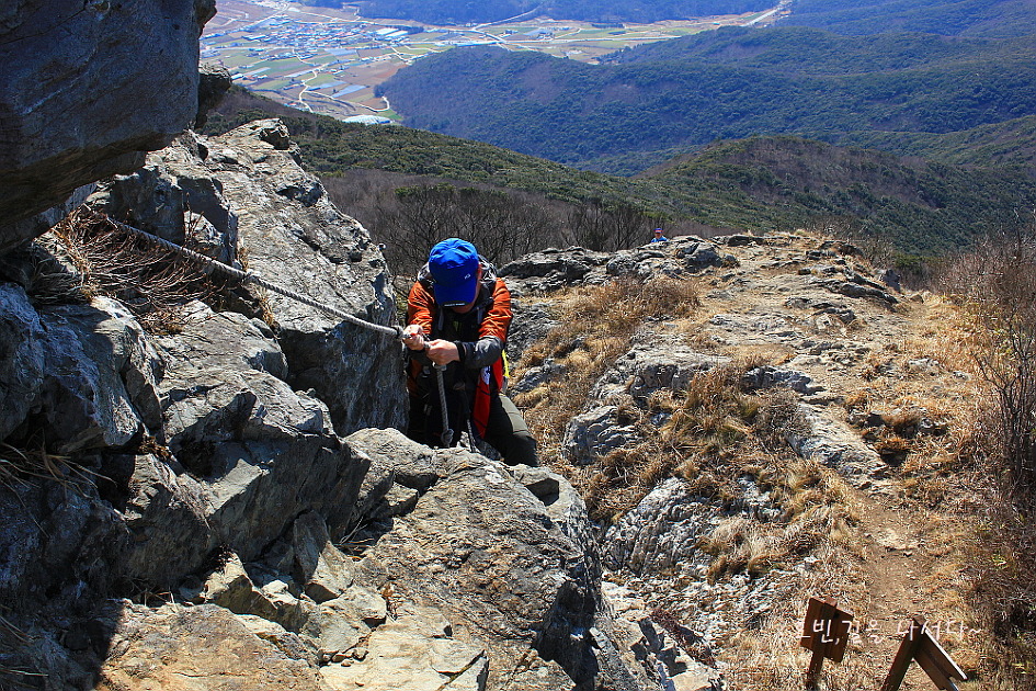 숙승봉 아래 내 뒤로는 촬영세트장이 있던 곳이었고 우리가 하산할