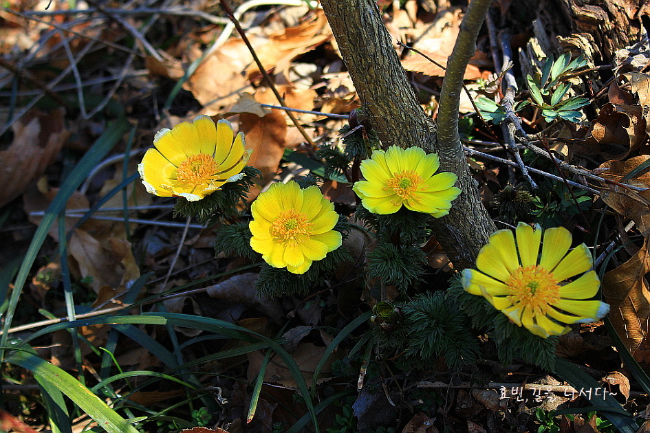 사실 복수초(개복수초)는 어찌나 많은지 온 숲이 노랗게 보일 정도다.