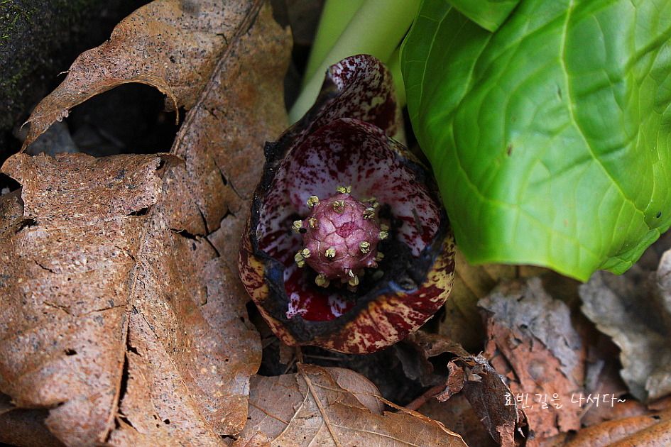 독성이 있다하여도 잎과 불염포마저도 여기저기 산짐승들이 갉아먹은 흔적들도 보인다.