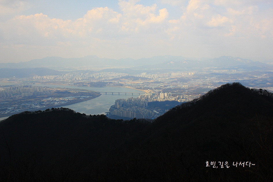 좌측은 내려선 예봉산, 우측 너머론 용마산과 검단산.
