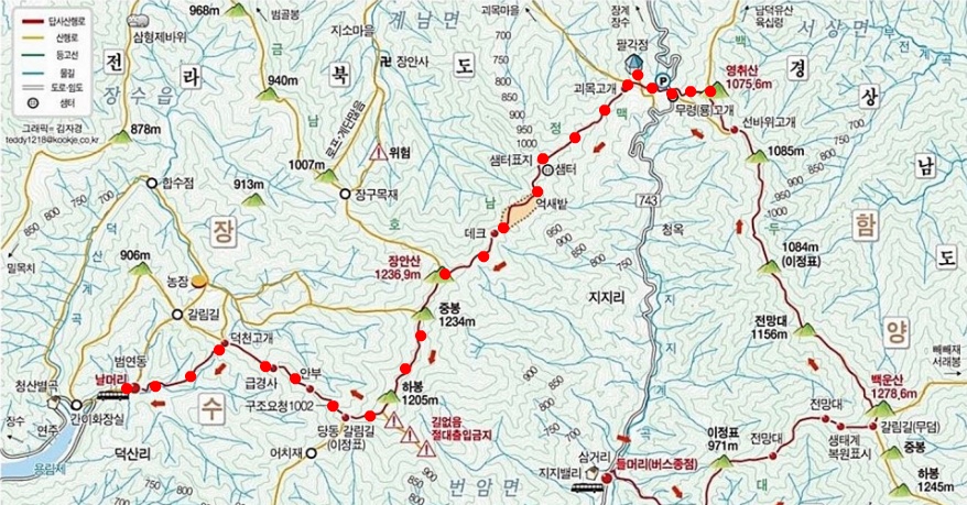 (아침 일찍 시작하거나 무박산행이라면 지지계곡에서 올라 백운산 ~영취산~장안산까지