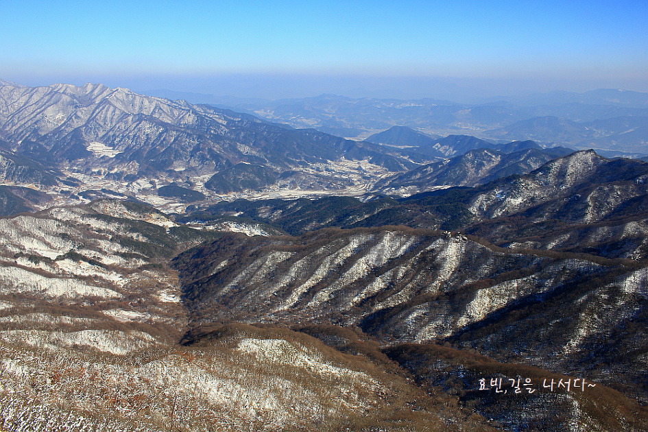 뒤로는 남덕유에서 덕유산,황석산까지 설산의 위용들이 한줄로 늘어서 있다.