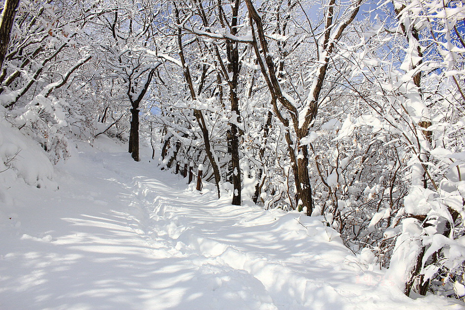 눈길은 더욱 깊어졌고 몇사람이 만들어놓은 발자국에 의지해 올라보는데