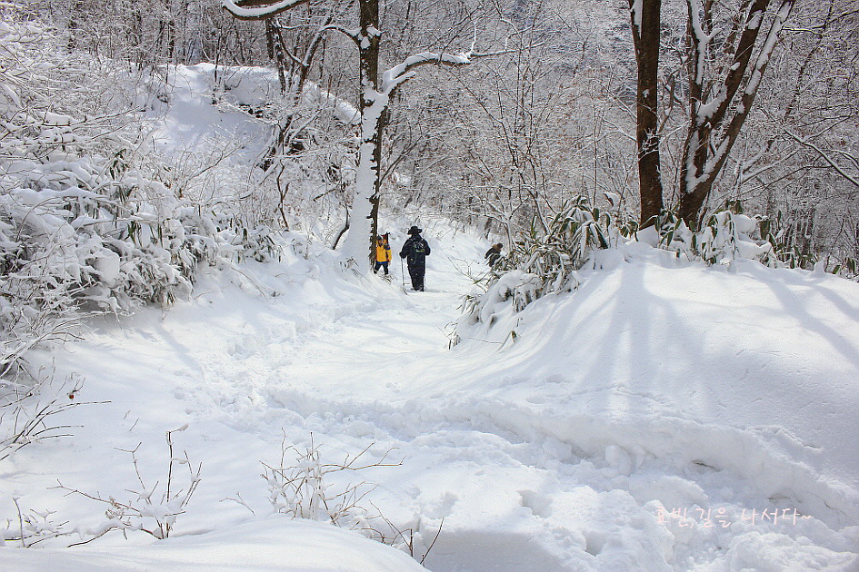 이제 본격적으로 산길에 접어들자 눈이 제법이나 깊다.