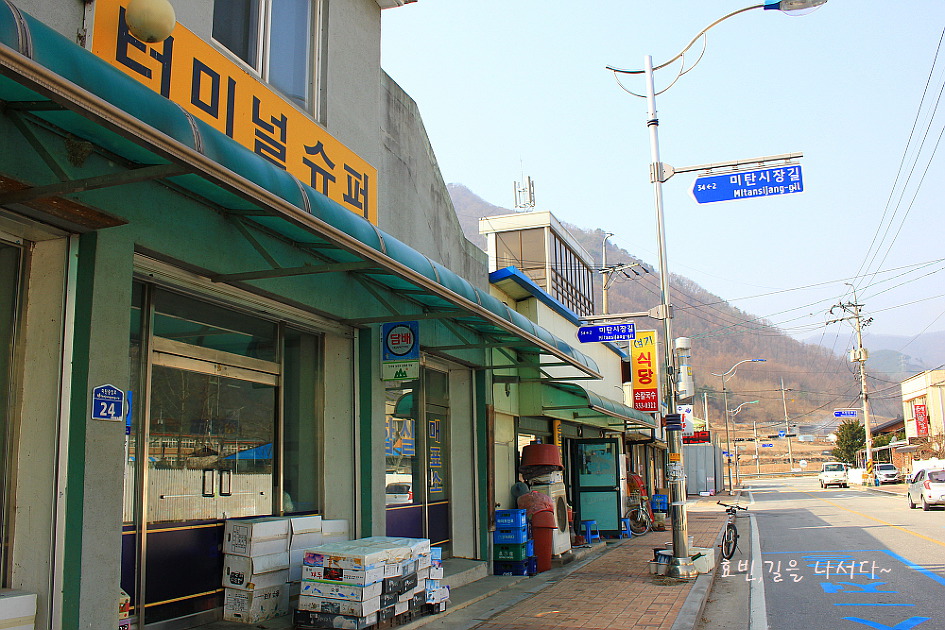 백룡동굴에서 큰 길이 있는 마하리 민물고기생태관까진 4.5km 정도.그 곳에서 미탄 가는 버스를 타려 한다.