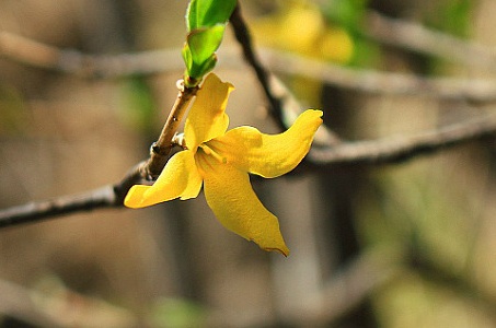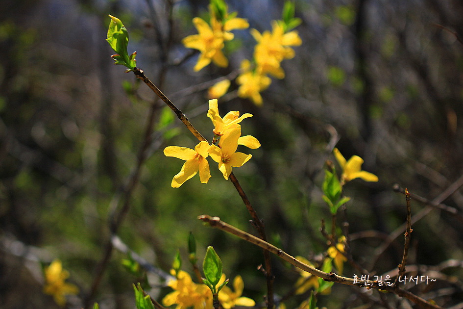 휘청휘청 가지가 늘어지는 공원이나 산길에 식재한 개나리와는 차이를 보인다.