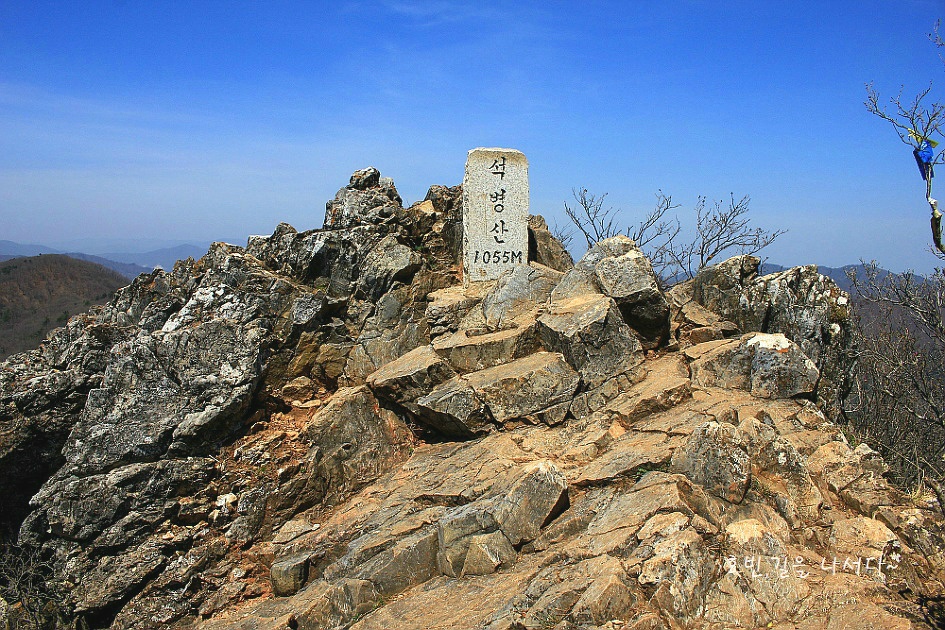 삼각점이 있는 전위봉이다.석병산 정상은 바로 건너편 암봉이다.