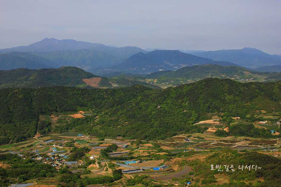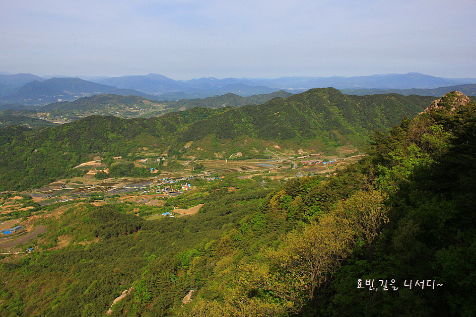 올라온 능선 우측뒤로가 대병4악의 하나인 허굴산. 중좌가 악견산과 금성산이다.