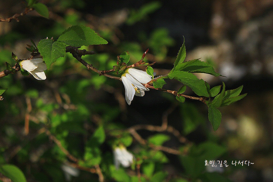 묵은 가지에서 꽃이 피는 매화말발도리다. 새 가지에서 꽃이 피면 바위말발도리.