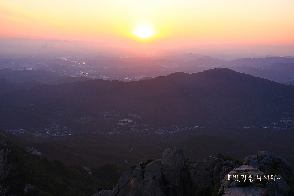 흰구름 두둥실 백운대라 하였거늘 흰구름 대신 너울대는 일몰빛이 가히 환상이어라.
