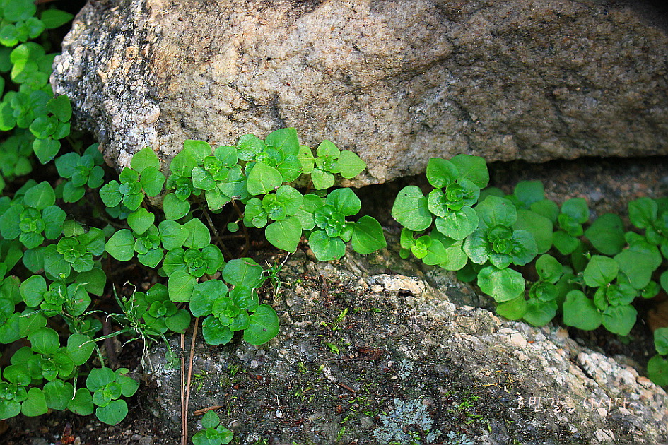 원효암 습한 담벼락 주변으로 쐐기풀과의 물통이도 자라고