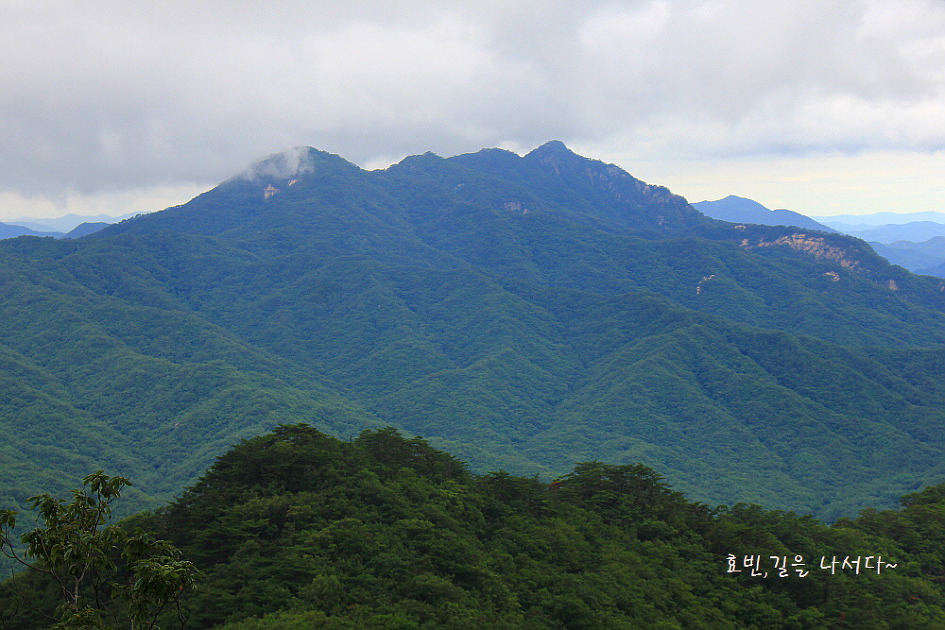 우측으로 뒤에서 두번째줄 대미산이 드러나고 좌측은 대미산과 연계산행 하기도 하는 문수봉이겠다.