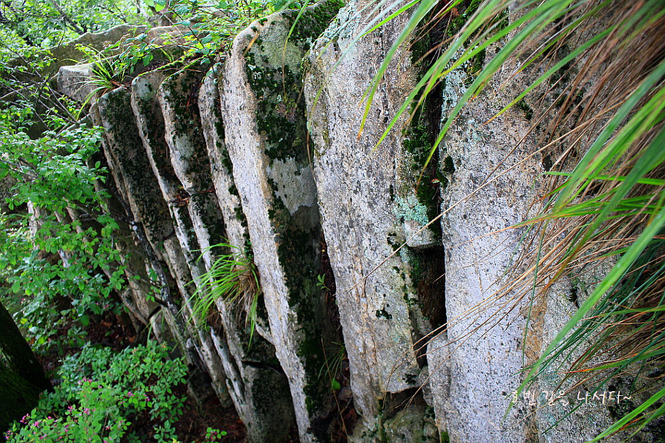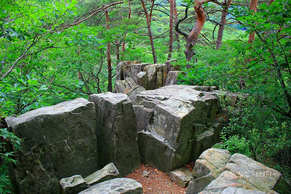 만수봉 정상부에 올라서면 마치 석공이 네모반듯 잘라놓은것 같은 바위들이 볼만하다.