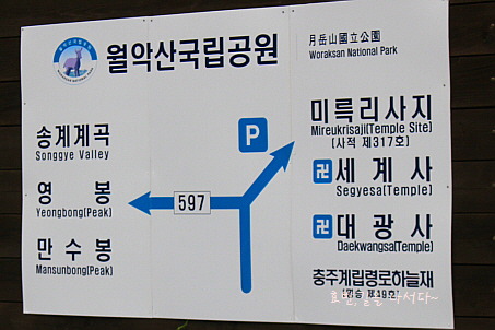 미륵리 주차장 뒤로 월악산 영봉이 고개를 빼꼼 내미니 벌써부터 산정에 섰을때의 기대감이 증폭되게 된다.