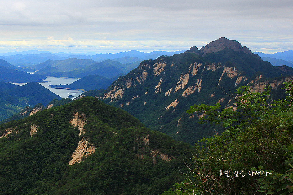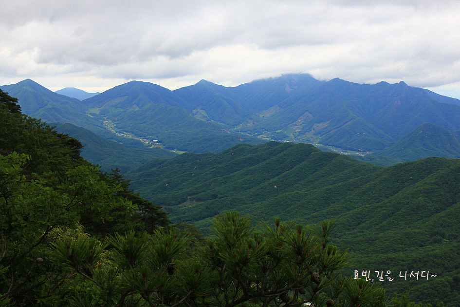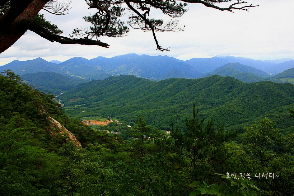 가려서 보이지 않지만 우측으론 문수봉과 대미산으로 이어질 것이다. 아래로는 유명한 용하구곡이 흐를 것이고.