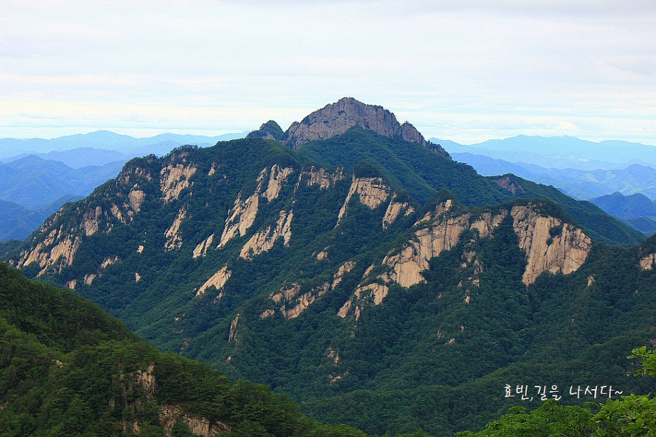 좌측부터 탄항산과 올록볼록 봉우리들 부봉과 부봉 살짝 우측 뒤로 신선암봉,