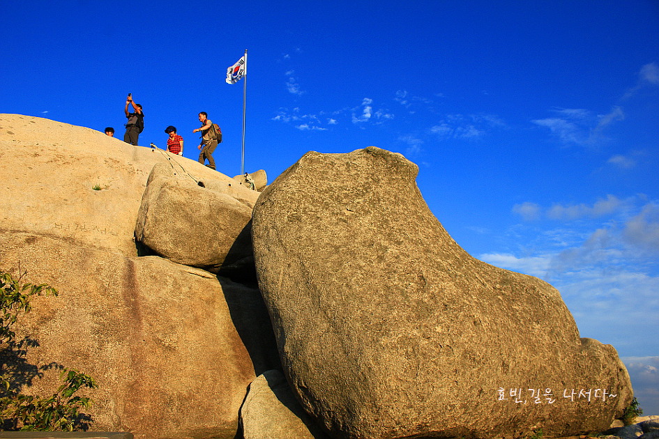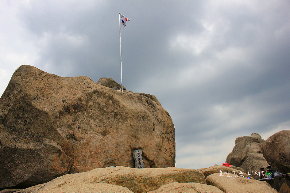 그렇게 태극기 휘날리는 수락산 정상 주봉(637m)에 선다.