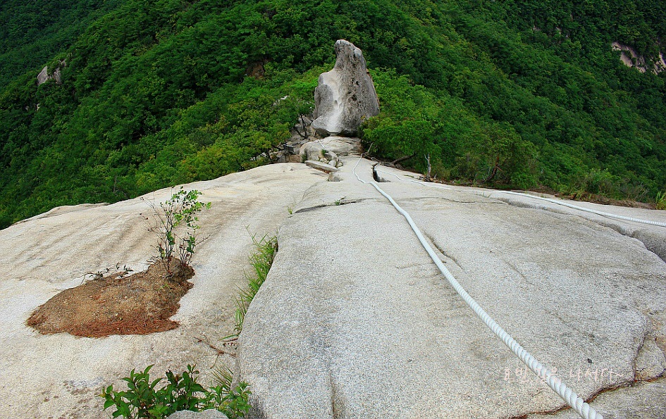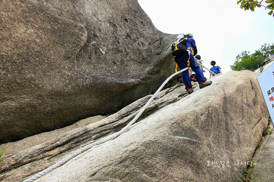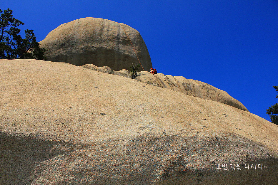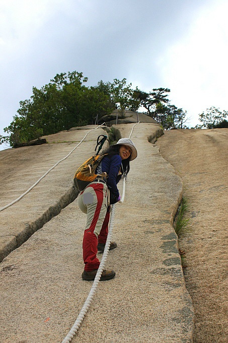 그래도 밧줄이 든든해 맨손으로 올라야 하는 어느 암릉들에 비하면 아주 수월한 편.