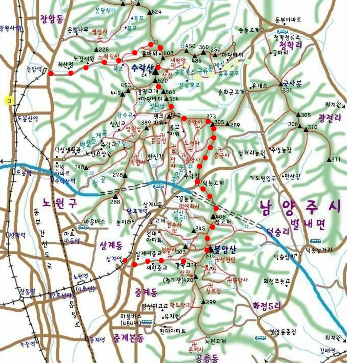 산행코스 : 장암역~기차바위~수락산~도솔봉~덕릉고개~불암산~깔딱고개~상계역(약 12km)